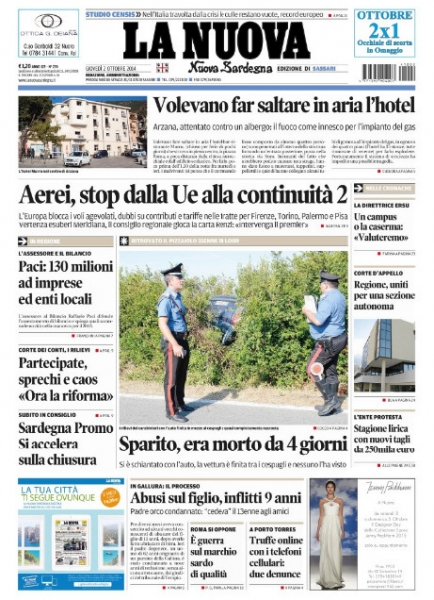 Torrende a La Nuova, sa foto-notìtzia est riservada a sa crònaca: «Agatadu su pitzaiolu de 35 annos de Lòiri. Isparèssidu, fiat mortu dae 4 dies. S'est atzumbadu cun sa mà china, sa vetura nch'est essida intre sos majones e nemos l'at bidu». In Àrthana, imbetzes, «cheriant fà ghere esplòdere s'albergu».