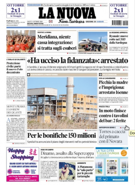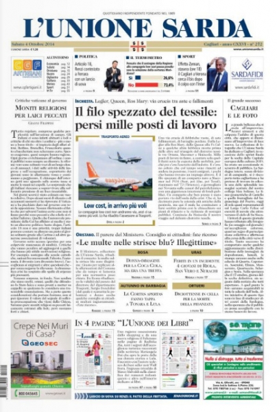 Tèssile in Thiniscole: inchesta de L'Unione. Ryanair abarrat, Meridiana litzèntziat? Bonìficas in Portu Turre annuntziadas dae Syndial. Crònaca e isport