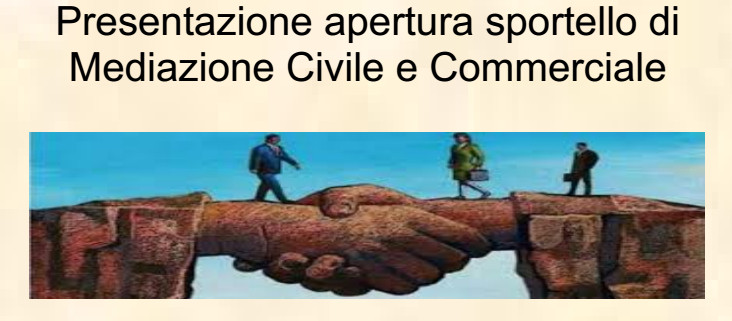 THIESI. Mercoledì 21 alle 18 presso la casa comunale, sarà presentato ai cittadini del Meilogu lo sportello di mediazione civile e commerciale. «Un nuovo metodo - così si legge nella locandina - per risolvere le liti senza ricorre al tribunale attraverso l’aiuto del mediatore». La discussione sarà coordinata dal mediatore Geom. Antonio Roberti e dai mediatori presenti.