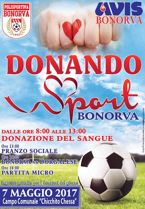 Bonorva. Il calcio che si unisce alla raccolta di sangue. “Donando Sport”, questo il titolo dell’evento promosso dala sezione locale dell’Avis, guidata dal suo presidente Angelo Solinas, e dalla Polisportiva che si svolgerà domenica 7 maggio. Il programma, che si svilupperà presso il campo comunale intitolato a “Cicchitto Chessa, prevede dalle 8.00 alle 13.00 le donazioni seguite, alle 13.00, dal pranzo sociale. Alle 16.00 si disputerà la penultima partita del campionato di promozione (girone B) tra Bonorva e Dorgalese mentre alle 18.00 gran finale con un’incontro della categoria micro. L’ingresso allo stadio sarà gratuito per i donatori del giorno.