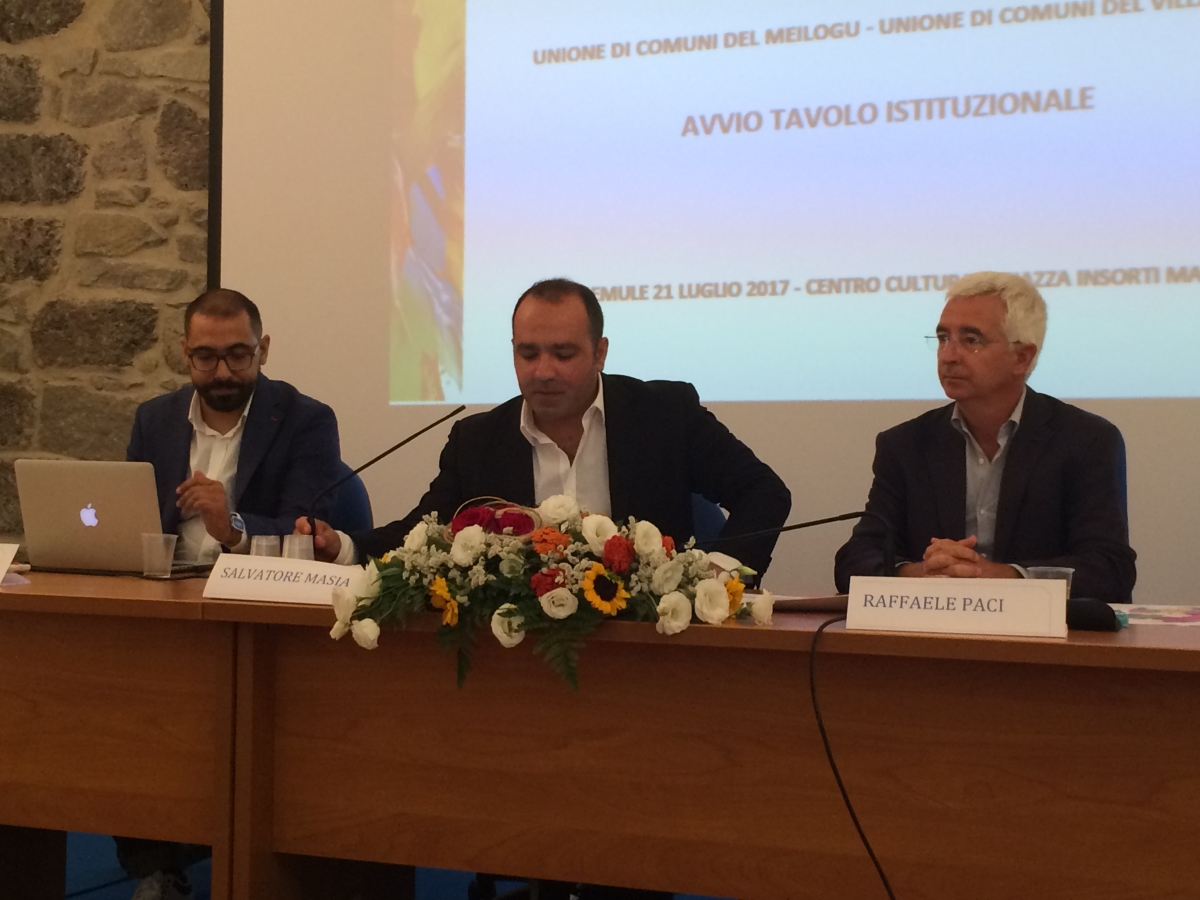 Dopo i saluti dell’Assessore Regionale della Programmazione Raffaele Paci, i due presidenti Salvatore Masia (Meilogu) e Quirico Meloni (Villanova), hanno illustrato gli indirizzi politici che hanno portato a questo percorso “Comune”.