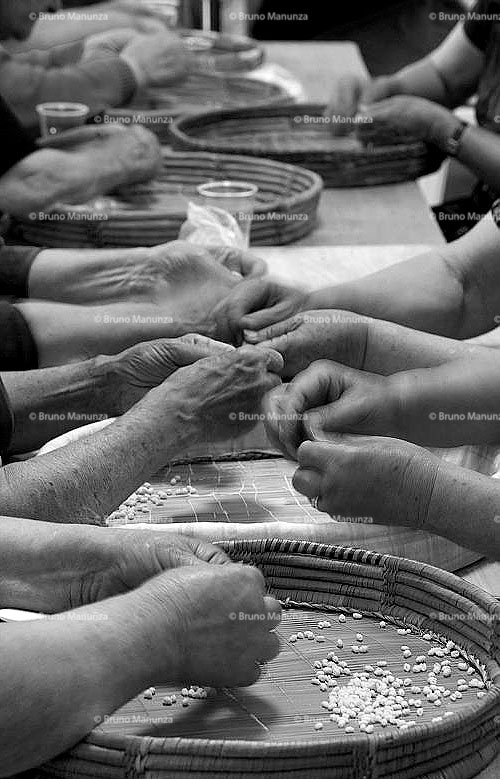 Un lavoro intenso che inizia già nel periodo compreso tra la fine di aprile e gli inizi di maggio, quando un gruppo di volontarie si ritrovano per produrre la quantità necessaria della pasta tipica necessaria per la sagra.