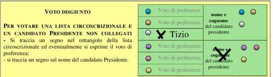4. Si può scegliere anche il voto disgiunto. Cioè votare un candidato consigliere (scrivendo il nome a fianco della sua lista) e optare per un presidente di un’altra coalizione (tracciando un segno sopra il suo nome). In questo caso il voto va al consigliere e al presidente prescelto.