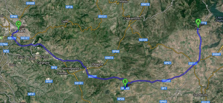 • partenza da Sassari, capolinea via Padre Ziranu, alle 14.30 e arrivo a Tula alle 15.30;
