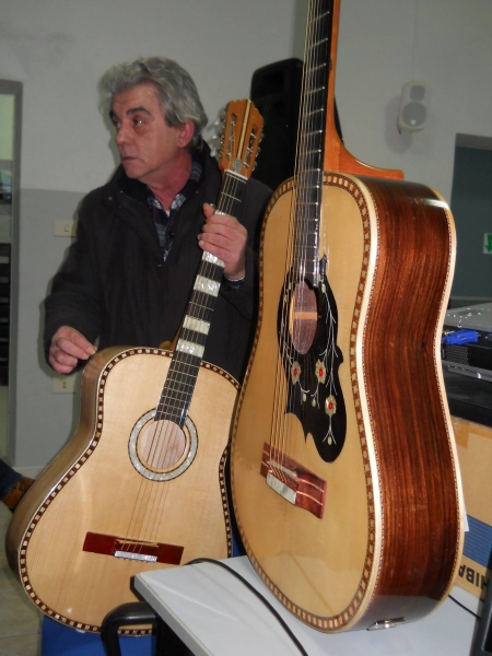 Una bellissima serata, rigorosamente in sardo, che ha avuto un buon seguito di pubblico, proveniente anche dai paesi limitrofi, dove sono stati ricordati fatti e luoghi che hanno caratterizzato questi cento anni di vita di questo genere musicale che vide la luce il 20 gennaio del 1915 a Bonnanaro, paese a pochissimi chilometri da Borutta. Il convegno, moderato da Mauro Piredda, che ha ricordato anche come la prima gara a chitarra sia venuta a pochi anni di distanza dalla prima gara di poesia improvvisata, svoltasi a Ozieri nel 1896, ha visto la partecipazione di Antonio Caria, collaboratore per le riviste ANTAS e LACANAS, che ha fatto un excursus della storia del canto a chitarra a partire proprio dal 1915 fino ad arrivare all’incirca ai giorni nostri, intervallando la relazione con alcuni brani audio, e del liutaio Nino Divona di Ozieri, che ha spiegato i vari metodi di costruzione e di restauro della chitarra sarda, dal materiale fino alla decorazione della medesima, mostrando al pubblico tre chitarre, costruite o restaurate da lui.