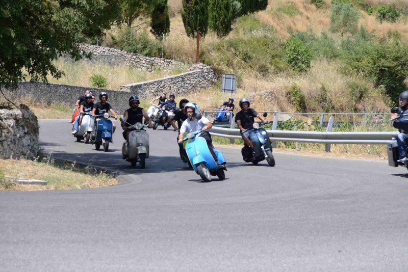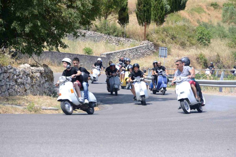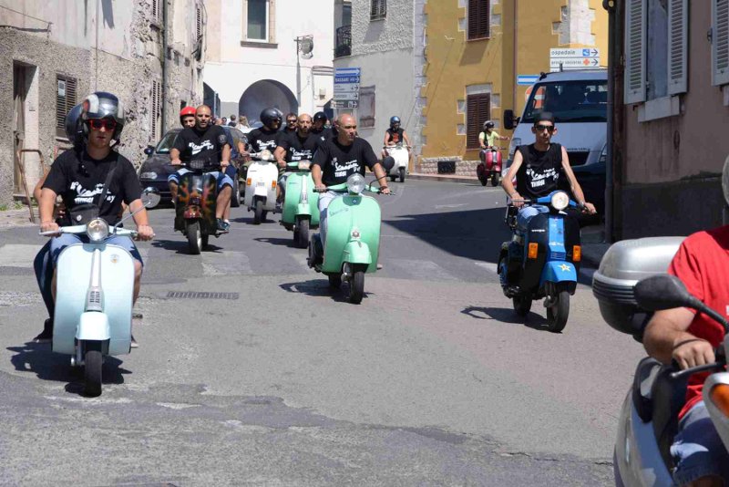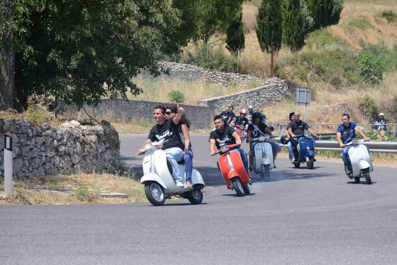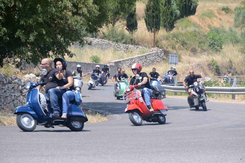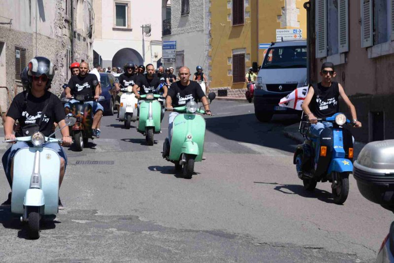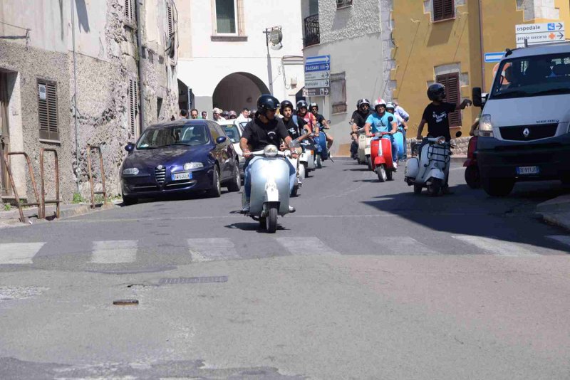 THIESI. A distanza di tre anni si è tenuta domenica 21 luglio la quarta edizione del “Vespa Day” del Meilogu. 120 esemplari hanno invaso l'area del “sottopassaggio” tra il corso Vittorio Emanuele e via Roma: presenti le rinomate 50 special, le 125 primavera (ET3) e quelle a faro basso del 1950, i 150 sprint veloce e anche numerosissimi PK e PX di vari modelli e cilindrata. Dopo la lunghissima coda per l’iscrizione le vespe sono partite in direzione Cheremule. In quella prima sosta un saluto d'obbligo a Mario “Cognacchino” Chessa, il più anziano della compagnia e sempre presente fin dal primo raduno, venuto a mancare lo scorso dicembre. Un mazzo di fiori e un intenso applauso quasi fosse un abbraccio alla moglie e alla sua famiglia. Nella successiva sosta un altro saluto a un altro amico, Antonio Mannu, recentemente scomparso a causa di un incidente stradale: in quel punto sono stati posti dei fiori. Altre tappe, con rinfreschi a Torralba e Bonnanaro (rispettivamente organizzati da Massimiliano Congiunti e dal comitato Santa Barbara) e rientro a Thiesi passando per Borutta. L'incredibile rombare di motori si è concluso nei pressi dell’asilo San Michele dove, nella splendida cornice del giardino dello stesso, è stato organizzato il pranzo x tutti i partecipanti. Hanno partecipato all’eventoi “Vespalguer” di Alghero, i “50 Special” di Portotorres, i “Vespa...Io” di Nuoro, gli “Squadriglia runners” di Sassari oltre ai gruppi di amici di Ossi, Tissi, Usini, Olmedo,Thiesi e paesi limitrofi.